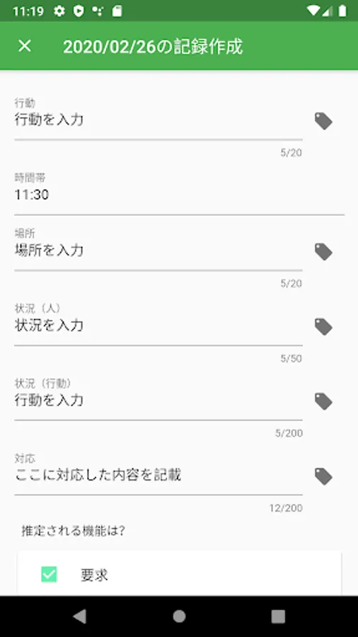 It is a recording app for supporters to solve and support the behavioral difficulties of people with intellectual and developmental disabilities.