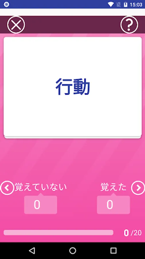 簡単なスワイプ操作で、「覚えている単語」と「覚えていない単語」に分別することができます。