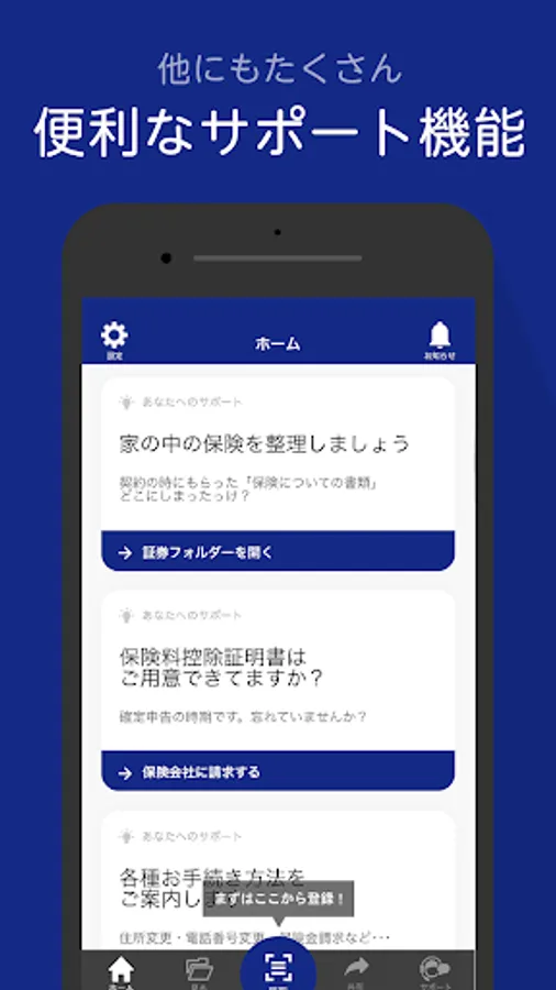 保険を契約している全ての方が、安心して保障(補償)を受けられるように、ご利用いただきたいアプリがfolder(フォルダー)です。