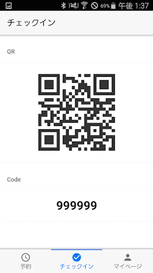 Display Acall user's QR code. You can check in to any Acall service, such as office/building entry/exit and meeting rooms, by scanning the QR code.
