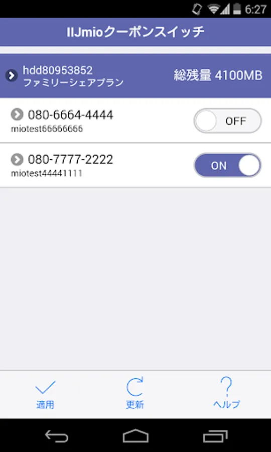 When you have the max data volume that you can send and receive at the max speed named coupon on the IIJmio Mobile Service contract, you can control your data rate at the high or low speed with this application.