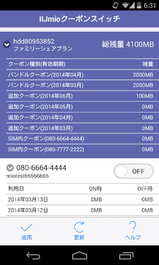 To purchase coupon or check the detail of coupon volume, please visit IIJmio Web site ( https://www.iijmio.jp/service/setup/hdd/ ).