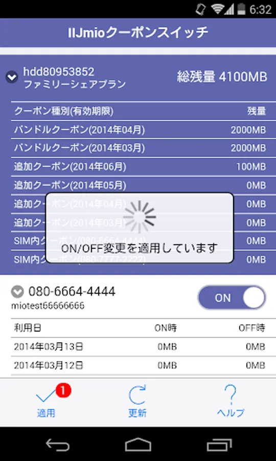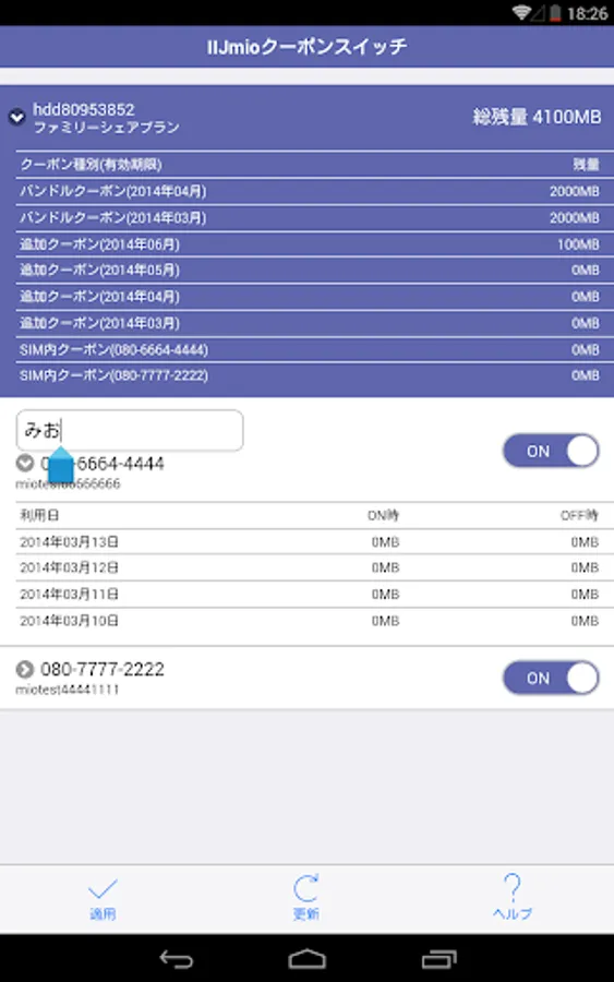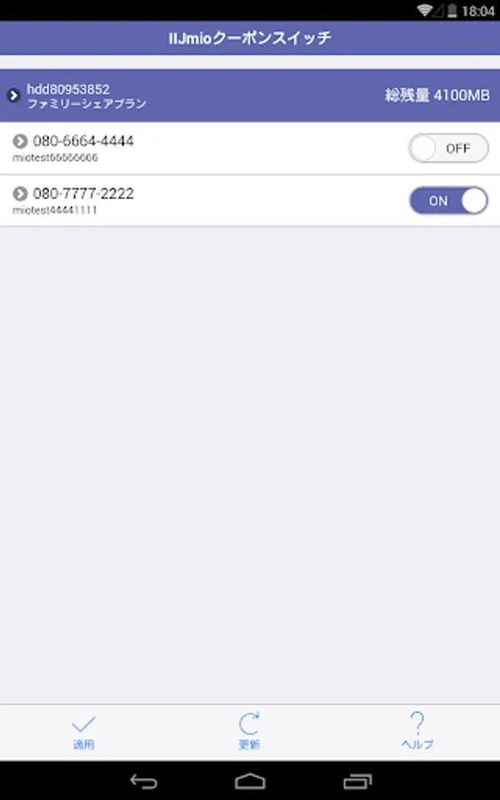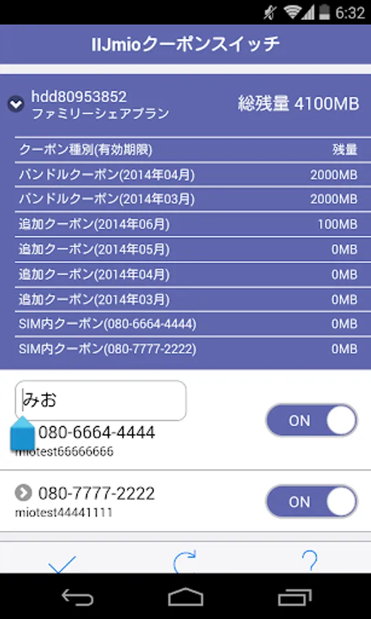 In your home menu, "mioPON" is displayed as the app name instead of "IIJmio Coupon Switch".