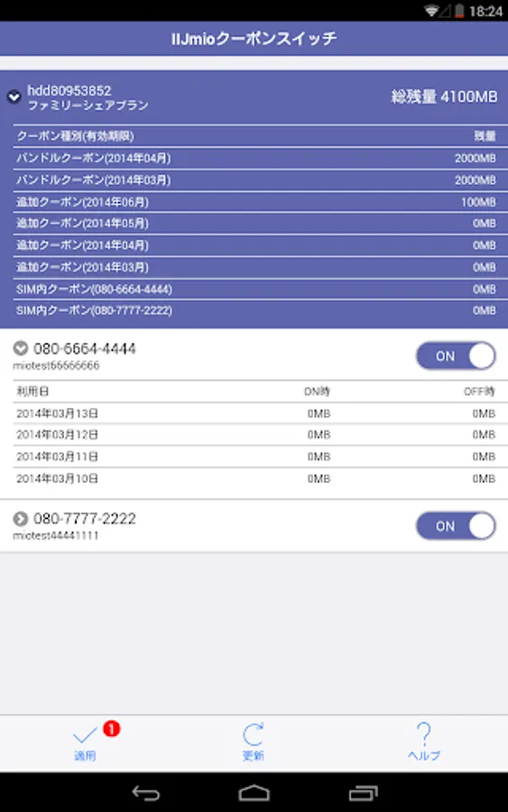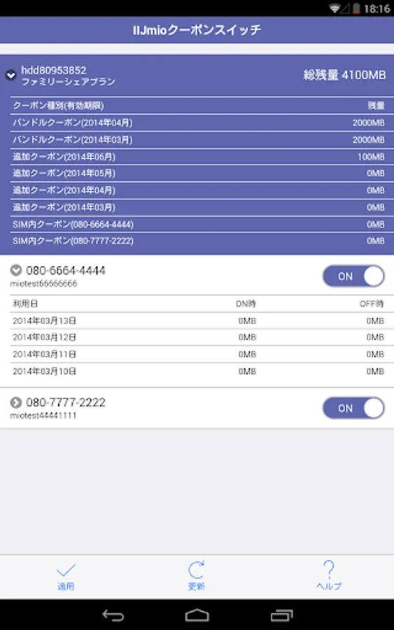 IIJmio Coupon Switch (mioPON) can change your data rate at the high / low speed.