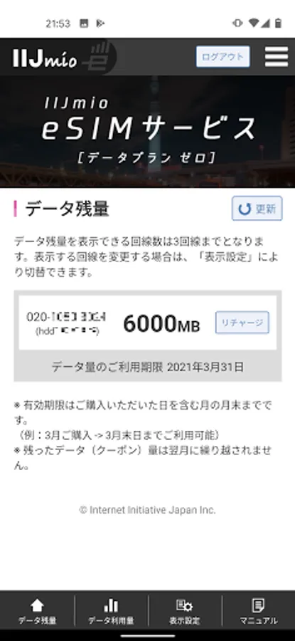 IIJmio eSIM Service Data Plan Zero