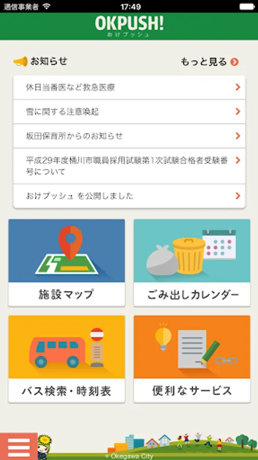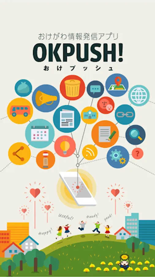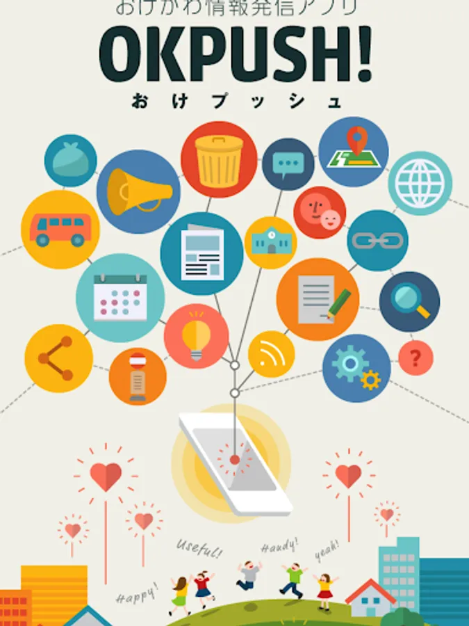 おけがわ情報発信アプリ『おけプッシュ』は、市からの最新情報を利用者の希望に合わせてスマホに自動でお届けするアプリです。