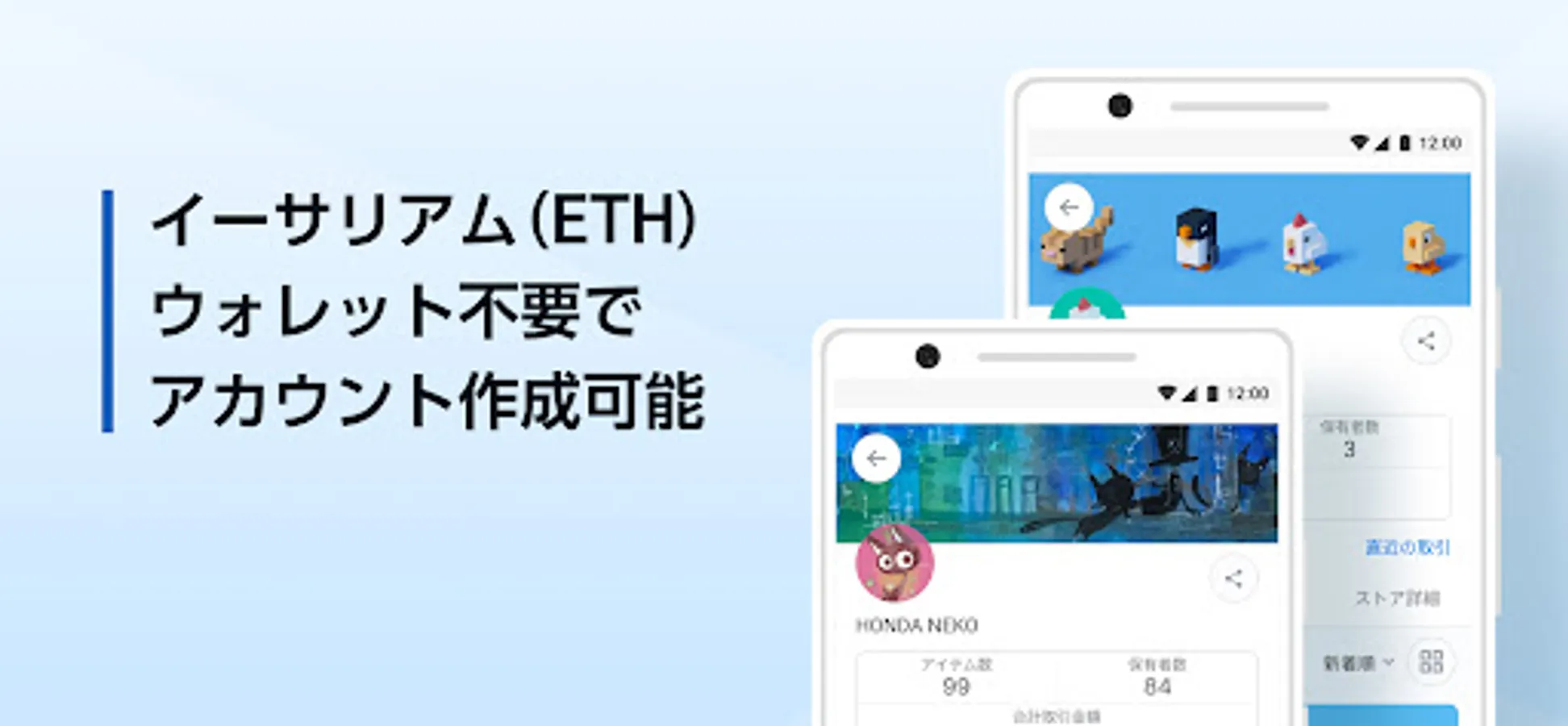 With Adam byGMO, there is no need to purchase crypto assets (virtual currencies) such as Ethereum (ETH) or create a wallet, which are required in general NFT marketplaces.