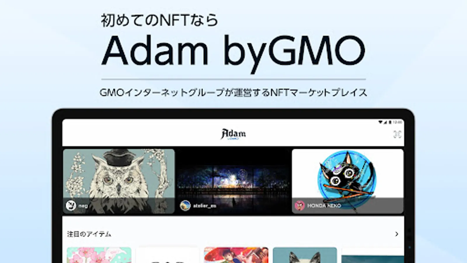 The Adam byGMO app allows you to search, own and manage trending NFTs.