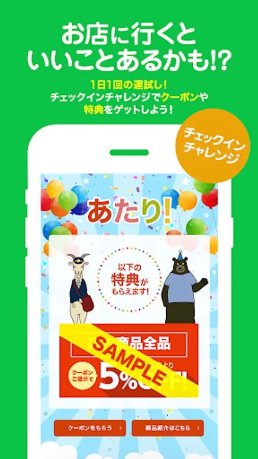 ・ Limited to one store once a day! Chance to win a coupon by checking in at a store and drawing a lot!