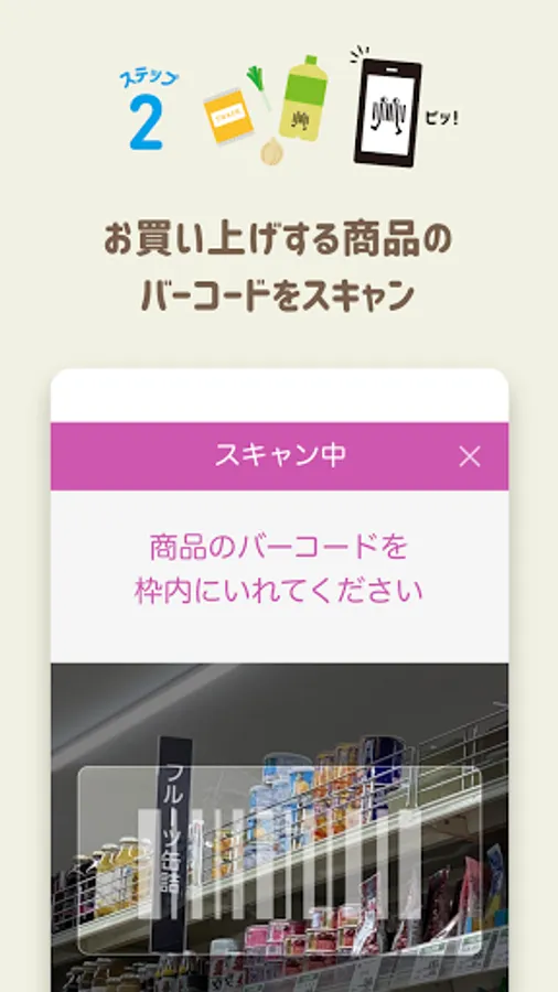 * For products without a barcode, tap "Products without barcode" at the bottom center of the screen and select the product.