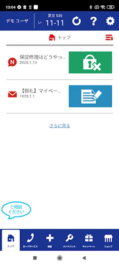 With this application, you can check the warranty details of the repair warranty you have subscribed to, guidance when using the warranty, and road service arrangements along with location information.