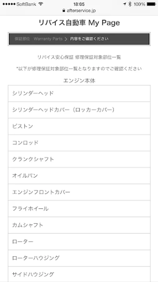 当、アプリケーションでは自動車修理保証の保証内容のご確認や