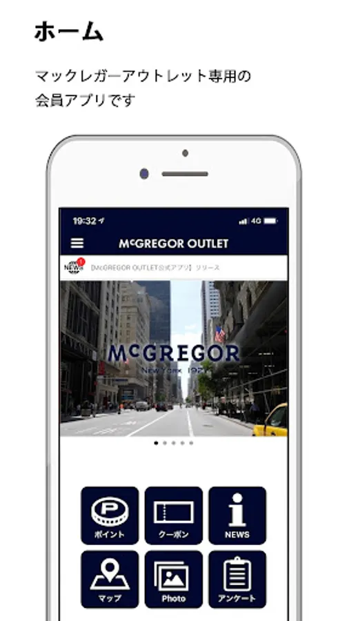 Deliver the latest information of the store / Use points to get at the store / Get exclusive benefits for application members with application membership cards and coupons / Navigate to nearby stores from the current location