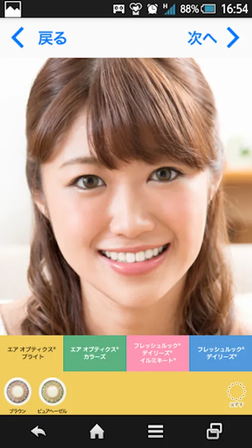 It is a function that allows you to try on circle lenses such as brown, diamond black, espresso gold, etc., and colored contact lenses such as green, blue, etc., based on photos saved on your smartphone or photos taken on the spot. You can simulate changes in the image of Hitomi and the image of the entire face, making it easier to find a color that suits you.