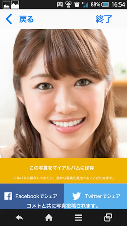 By selecting a photo of yourself and answering questions about your favorite color and style, you will be shown a cute illustration and diagnostic results with advice on fashion coordination, etc.