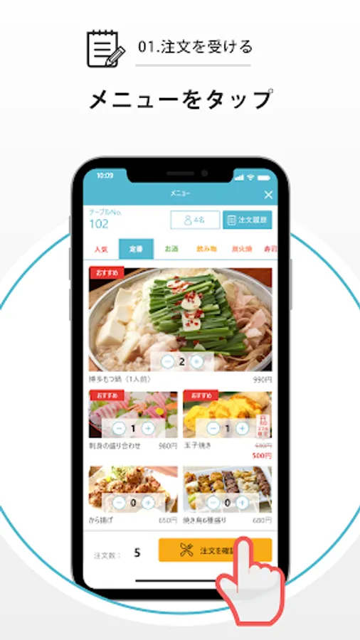 In addition, for customers who do not have a smartphone, the hall staff can place orders on behalf of customers from this app.