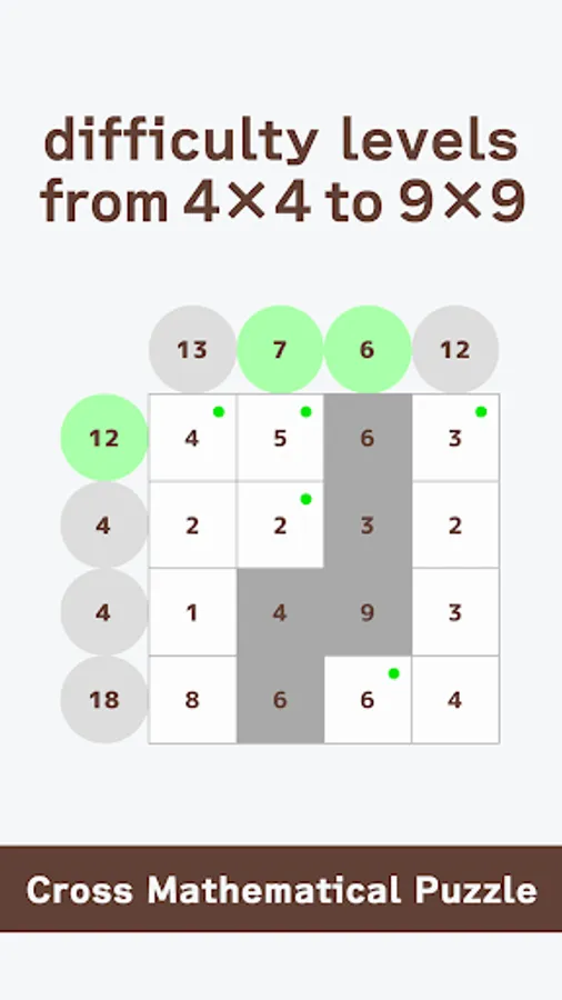 ・Makes the total of the numbers of row or column equal to the number in each circle.
