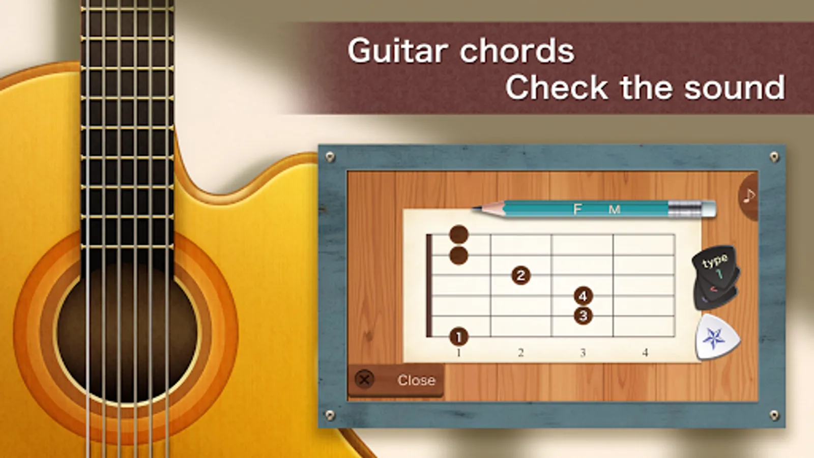 You can check the guitar chords and their sounds.