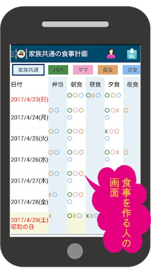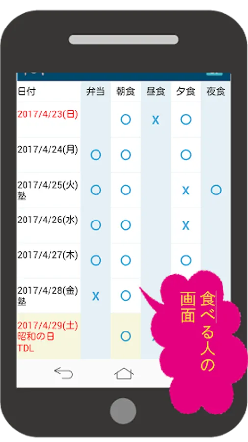 People who eat the meal, the schedule of meals, type in ○ ×, and then uploaded to the server.
