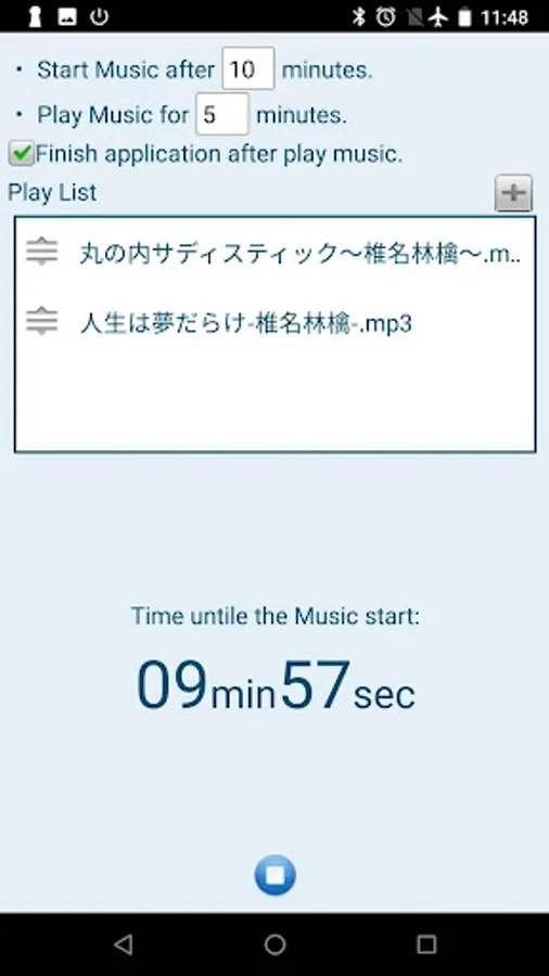 ・The music will stop after the specified time.