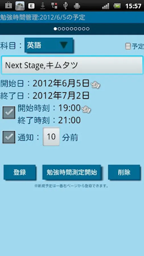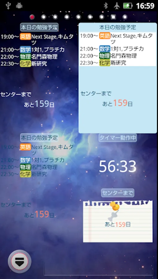 おススメの使い方は、開始日:○日~終了日:○日というように連続で勉強の予定を登録しておき、ウィジェットを画面に表示しておきます。