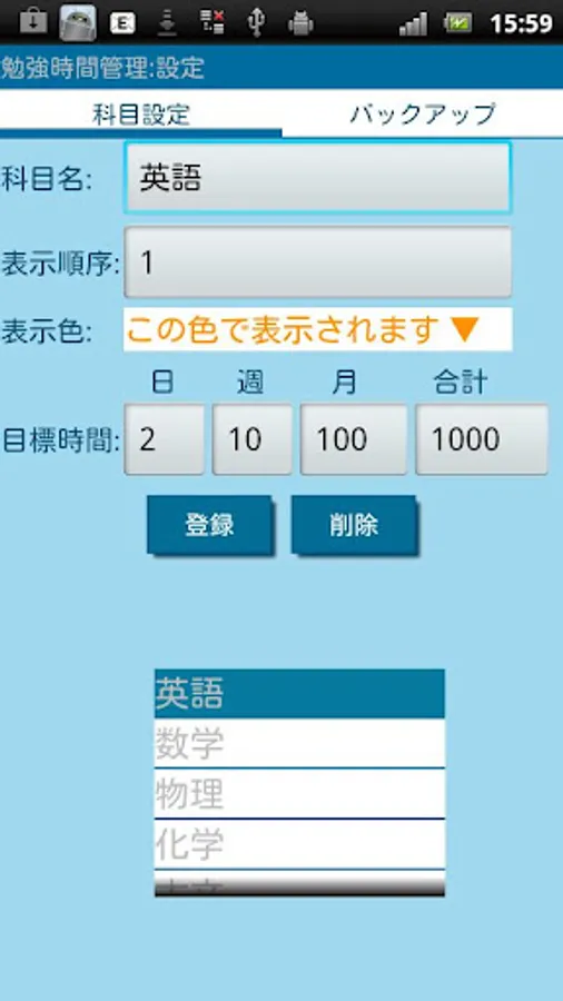デフォルトでいくつかの科目が登録されていますが、追加・削除ができます。