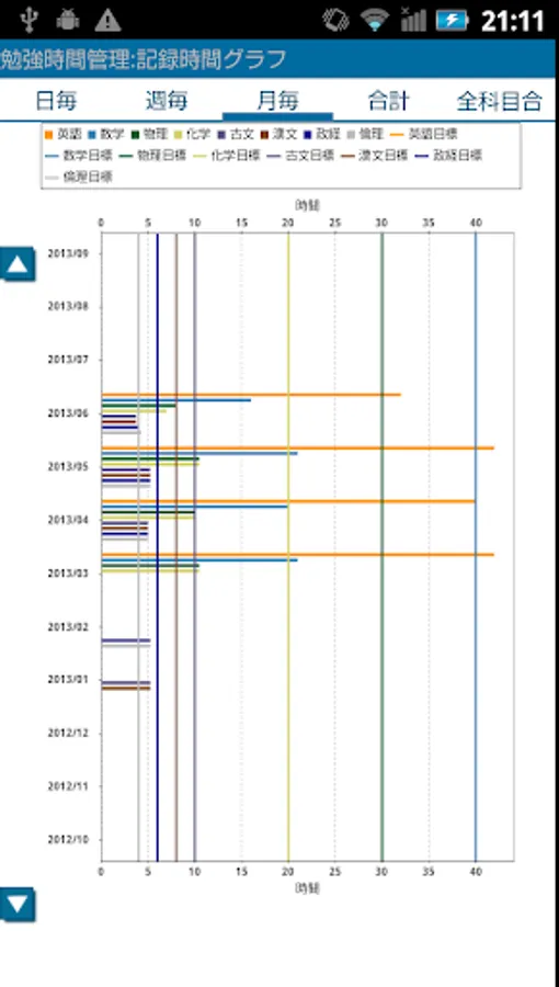各グラフの科目ごとの色も「科目設定」で設定した色に対応しています。