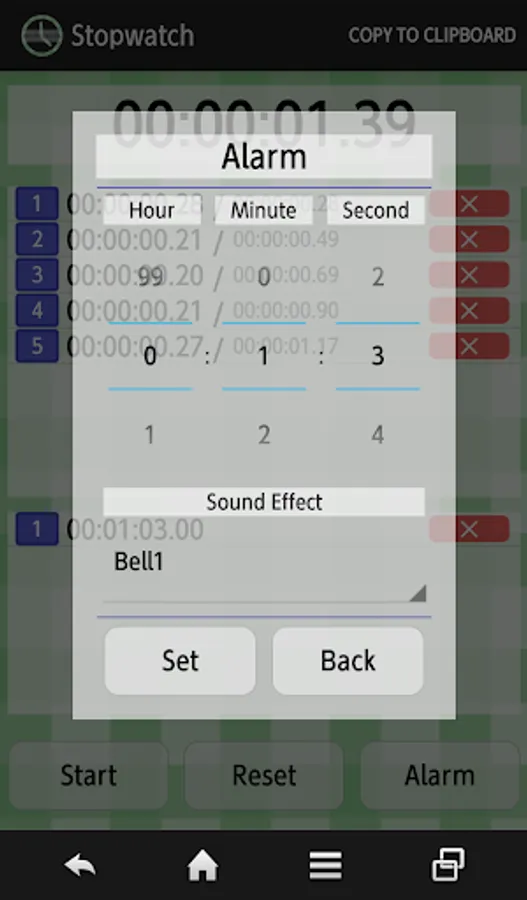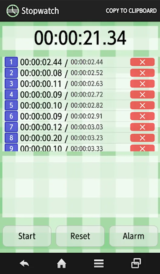 There is a simple alarm function that can be used as a lap time and presentation timer.
