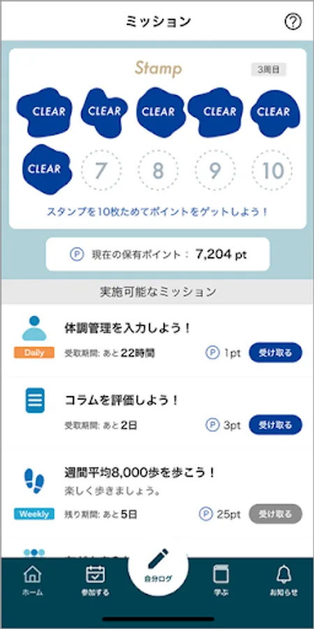 Missions are prepared with various contents linked to each content, and you can earn points for each mission you complete, and you will also get one &well stamp.