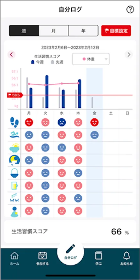 The entered items can be graphed along with the daily number of steps to check the transition.