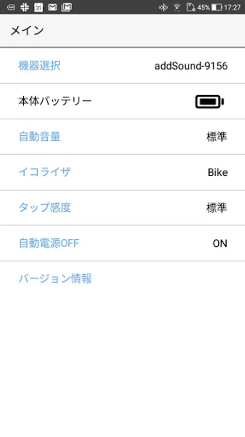 It is a setting application of the audio system addSound for motorcycle helmets.