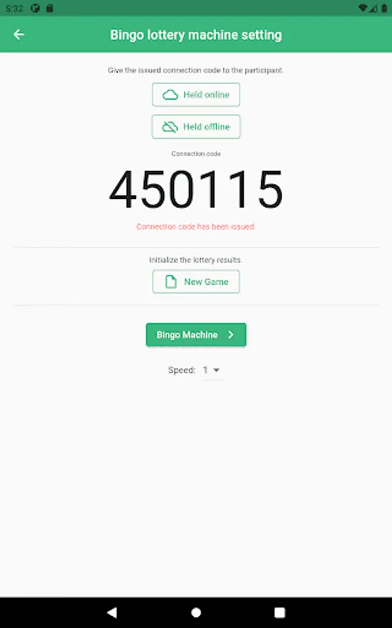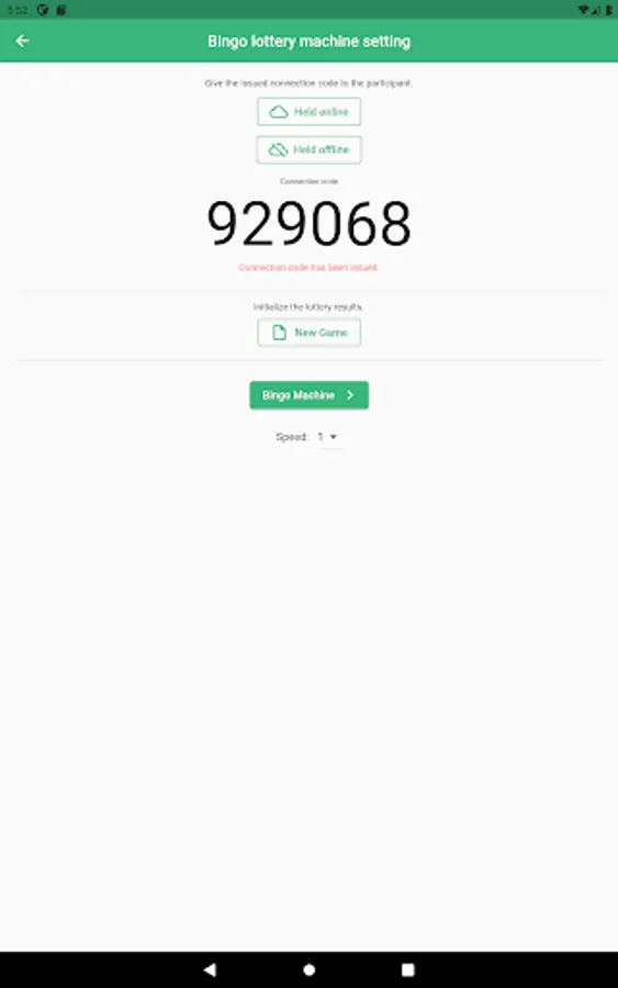 The organizer issues a connection code in the lottery machine settings and informs the participants.