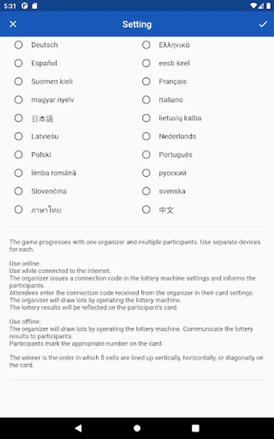 The winner is the order in which 5 cells are lined up vertically, horizontally, or diagonally on the card.