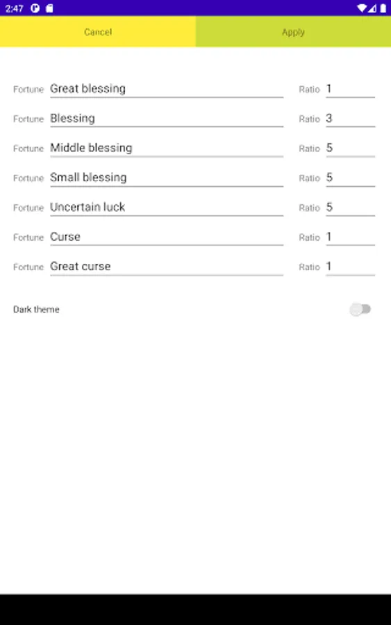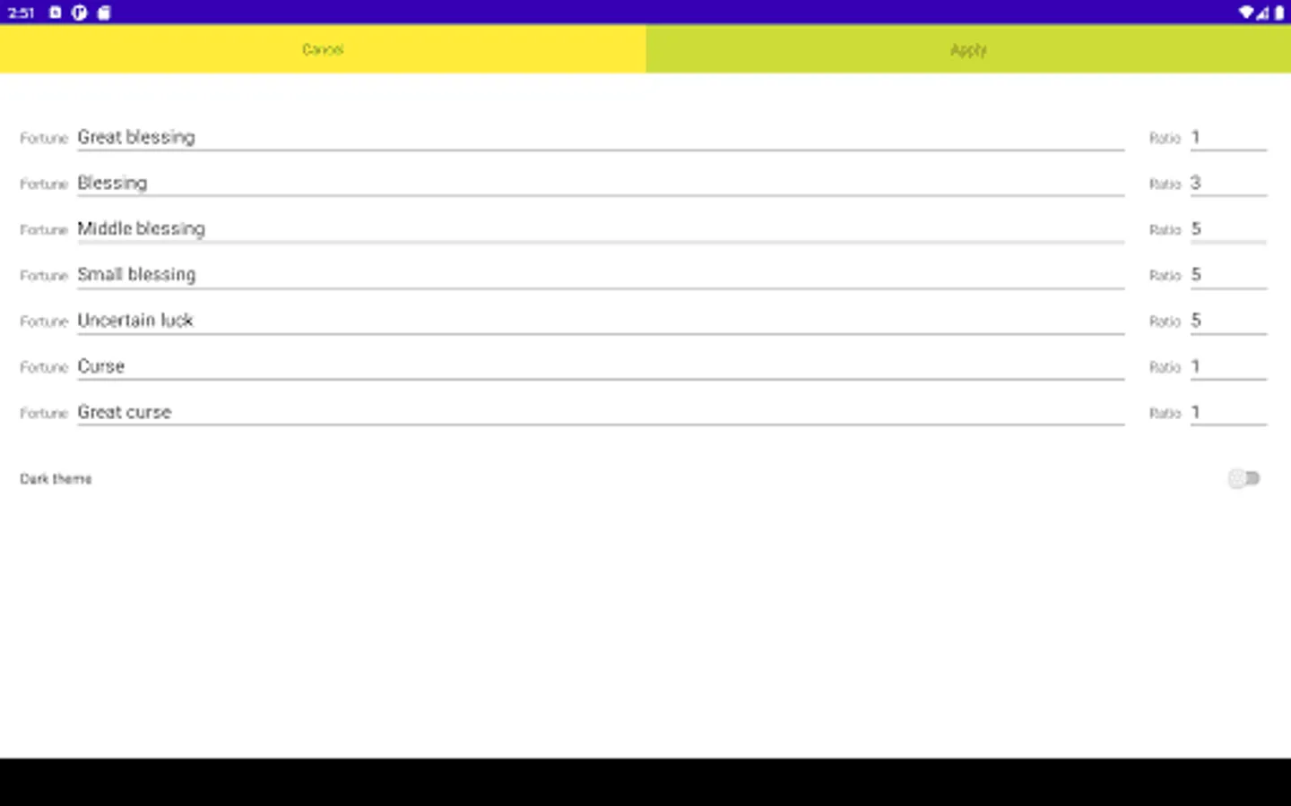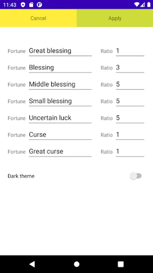 You can register the name and percentage of good and bad fortune from the settings.