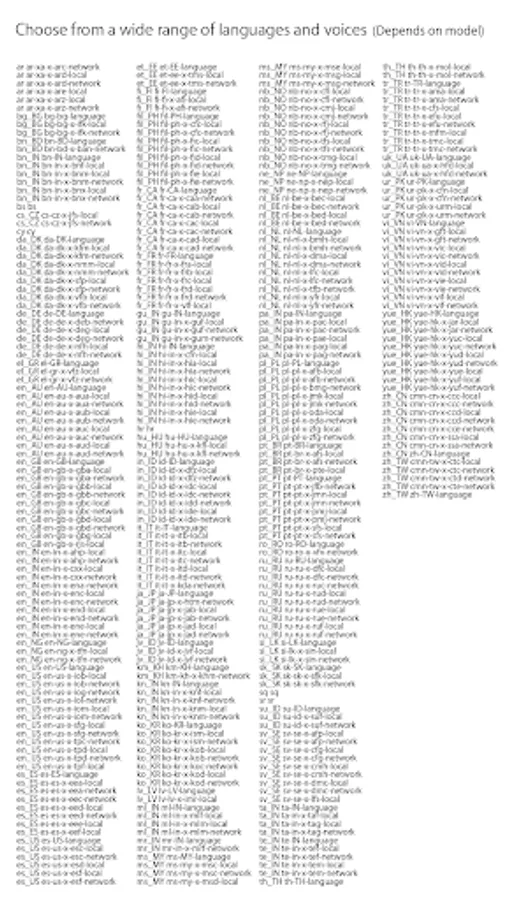 You can choose from a wide variety of languages and voices for reading. (Depends on model)