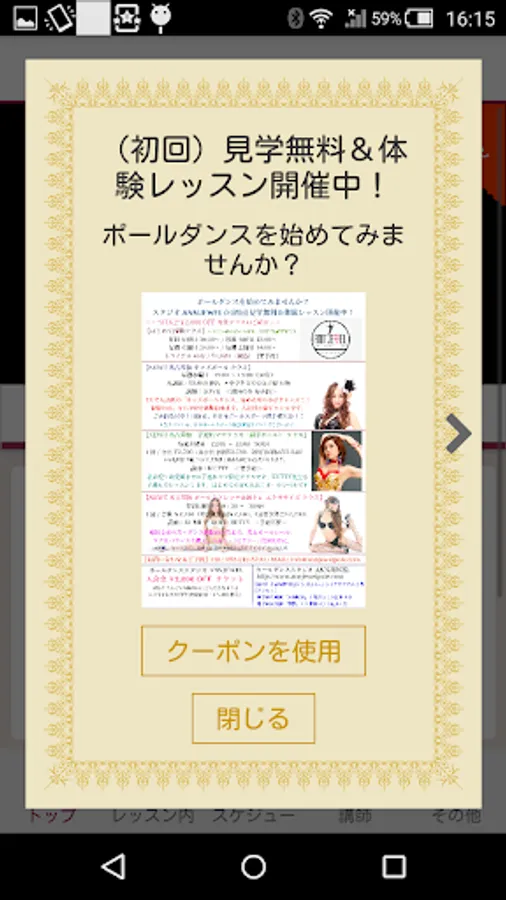 Tokai district's largest! This is the official app of Nagoya's first pole dancing professional studio NAGOYA POLEDANCE STUDIO ANNJEWEL (Ann Jewel). Six pole in ANNJEWEL I (up to seven) Permanent! Ceiling height 3.3M! Are equipped locker. [Rich LESSON menu] subject to those who aim towards ~ professional entirely of dance beginners. ☆ exercise, as diet, who plan a toned body building and supple. ☆ Shine femininity by becoming to Paul and familiar, it is like dancing in front of people, who want to express their individuality in a non-mundane world. ☆ nourish the expressive power and artistic property as dance entertainment, who plan a professional performer. ☆ as a sport, exercise and a healthy body building muscle strength, flexibility and trunk, who plan a future tournament and instructors. Etc., it is the content that corresponds to the wide range of purposes.