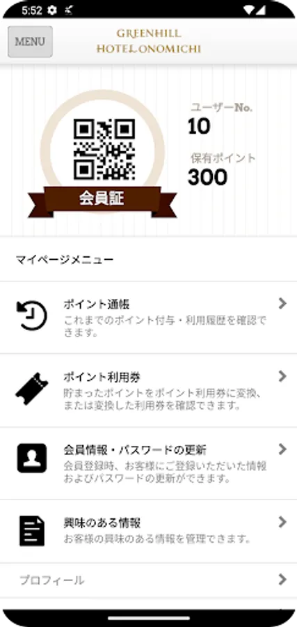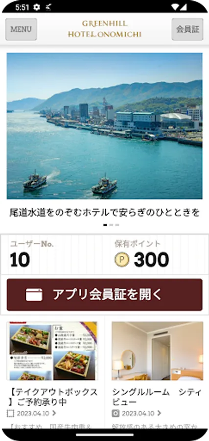 By registering as an app member of Green Hill Hotel Onomichi, you can receive member-only services.