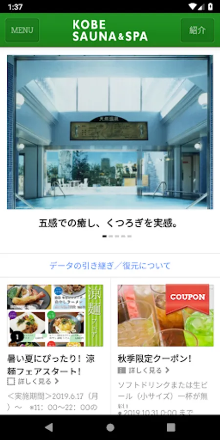This is the official app for “Kobe Sauna & Spa” with various relaxation menus as well as “Kaminoyu Onsen”, an open-air bath, and an authentic Finnish style sauna.