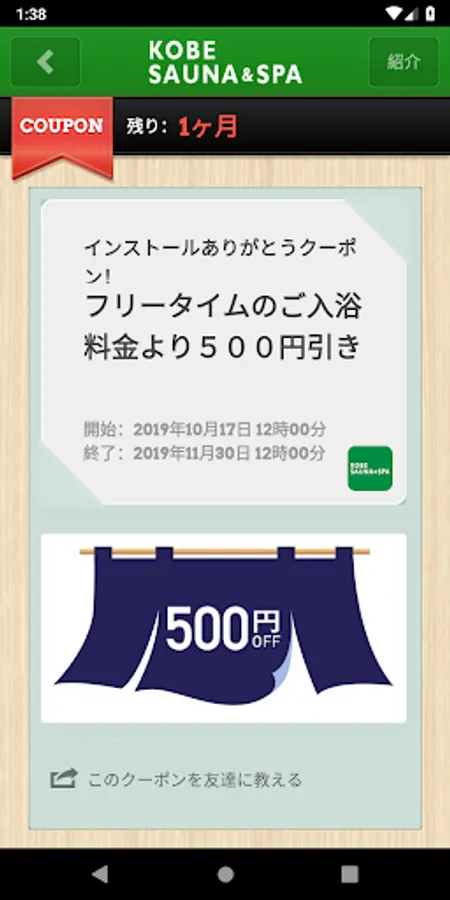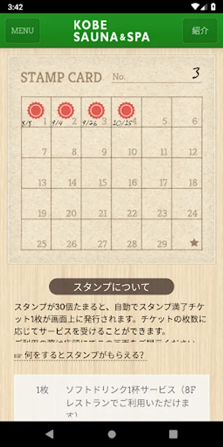 Stamps will be given when the app is installed for the first time or the app is started daily. Collect coupons that can be used at Kobe Sauna by collecting stamps!