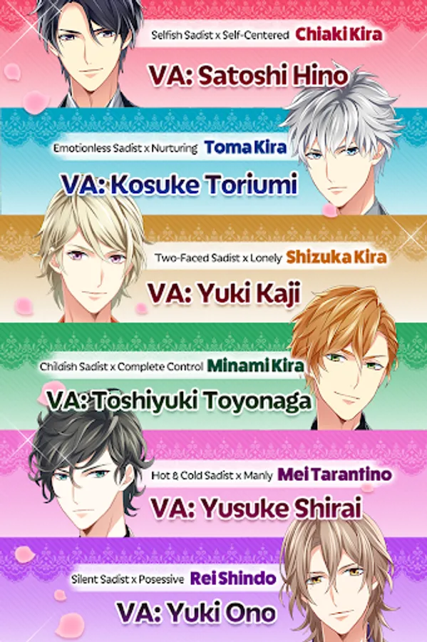 These guests: while they may look nice on the outside, are brothers with a sadistic streak… And to make matters worse, all of them are the sons of Keichiro Kira, the President of the very hotel chain you work for!