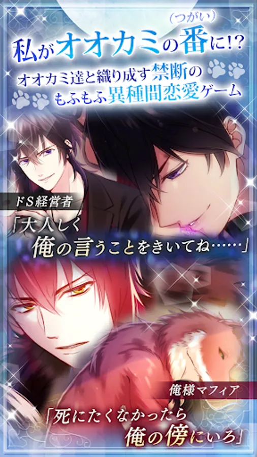 本作は、時にモフモフ、時にイケメンなオオカミ男と恋愛する女性向けゲームアプリです。