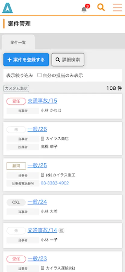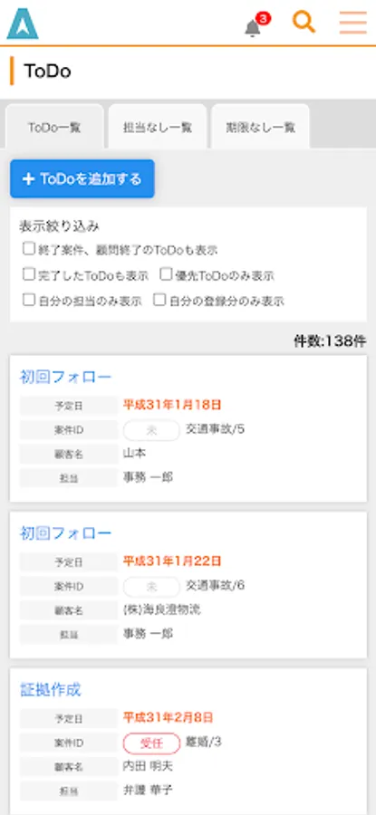 Various consultations sent to the office can be easily managed from acceptance to completion without conflicts of interest. Furthermore, from management of clients and lawsuits, deposits and withdrawals to scheduling,