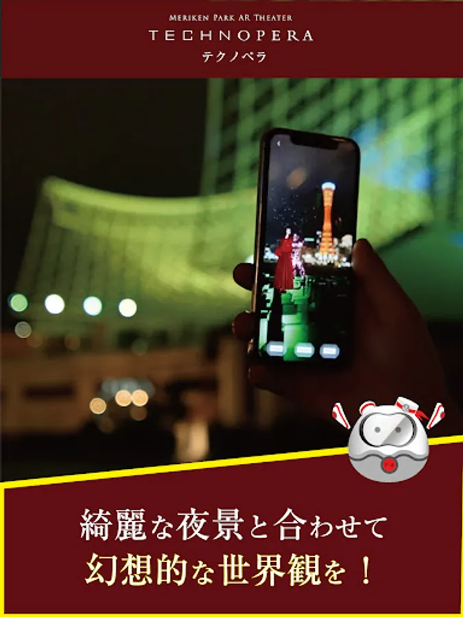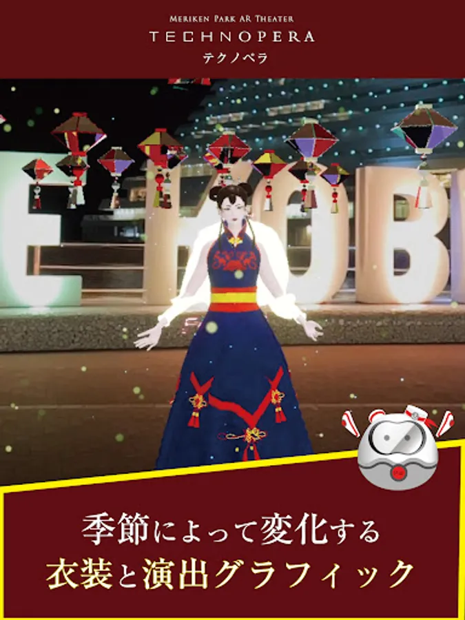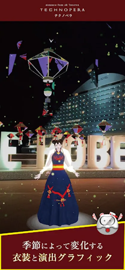 If you hold your smartphone over the eight AR points installed in Meriken Park, you can watch a digital opera with the original character "Kanade Mai".