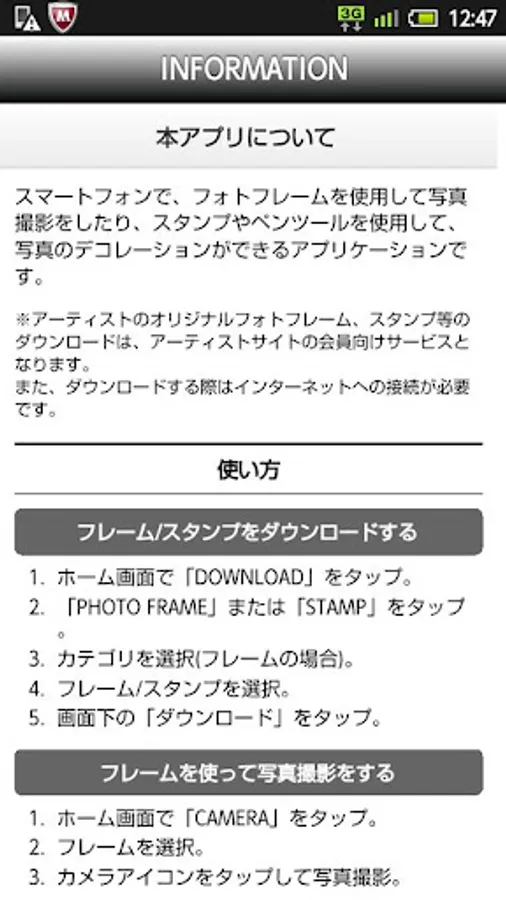 "Artist Photo Frame" is an application for members of the artist site operated by Fanplus Co., Ltd.