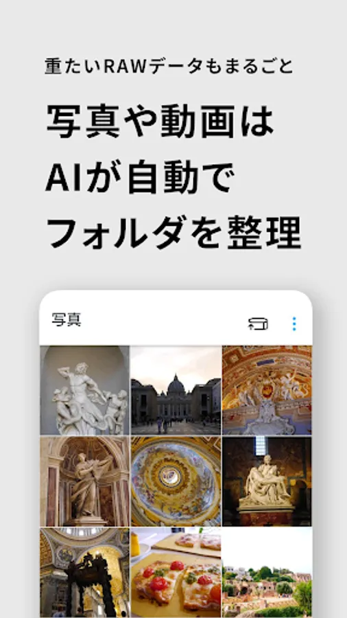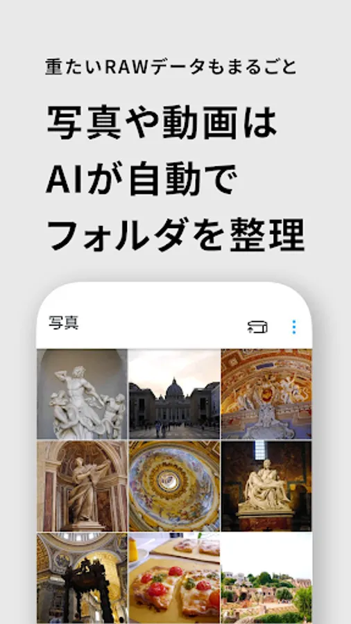 AI automatically organizes folders and automatically backs up the photos and videos you take with a dedicated app. artron UTO is perfect for those who take a lot of photos and videos for work or hobbies, and those who want to share photos with family and friends.