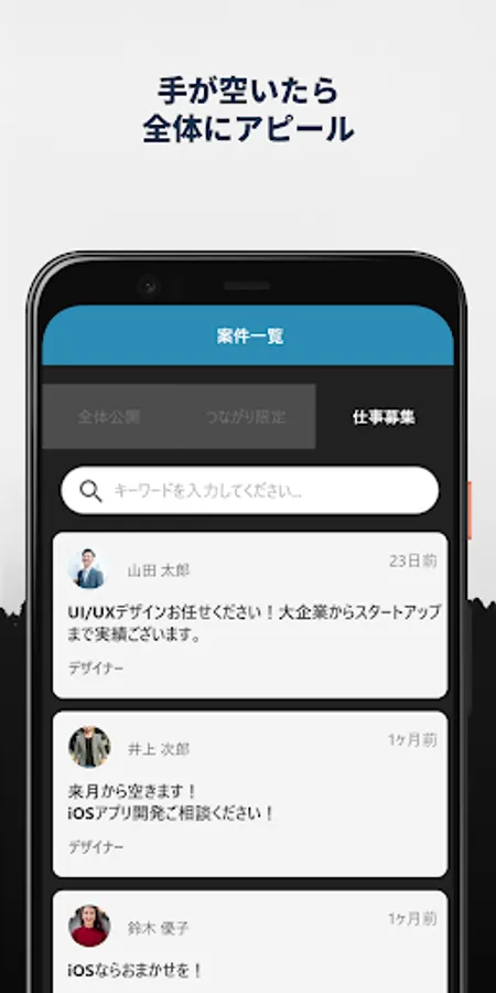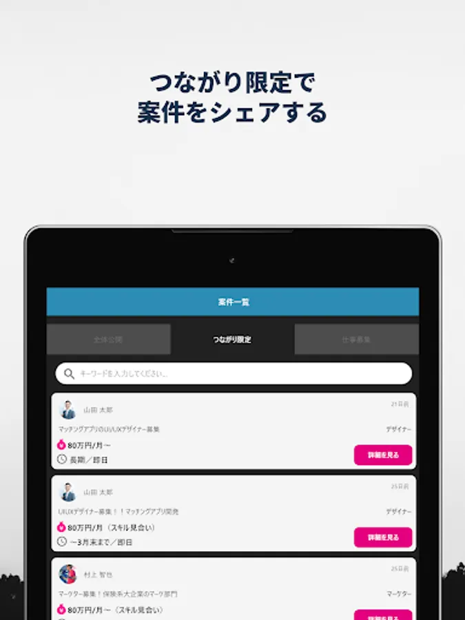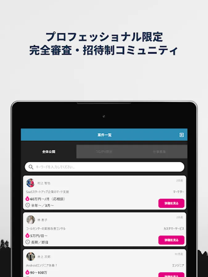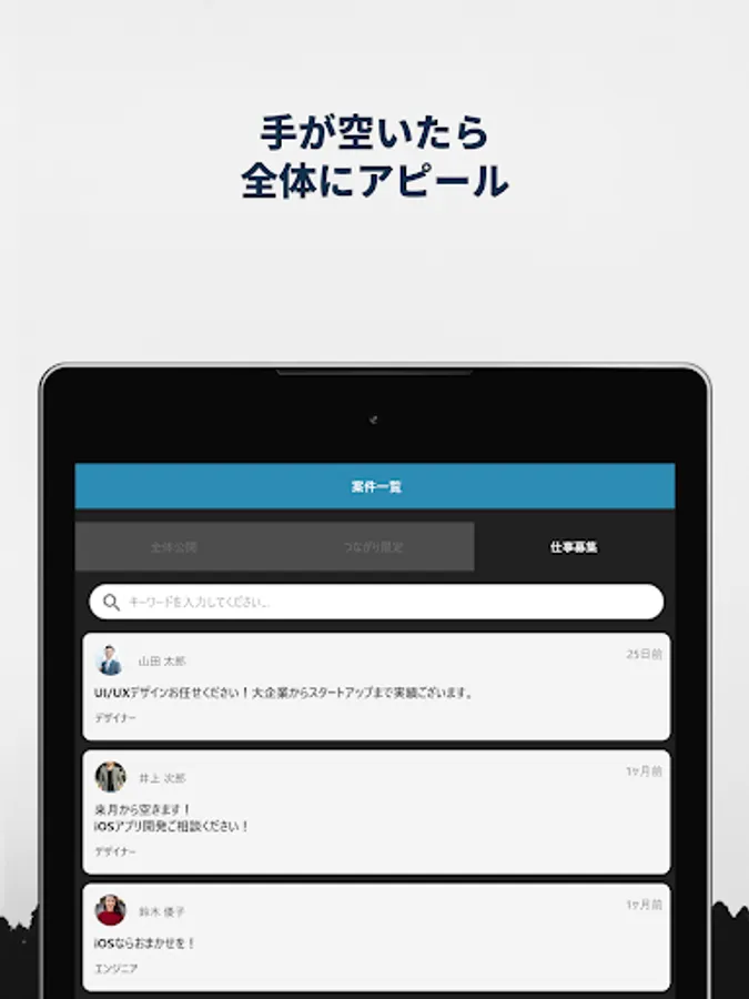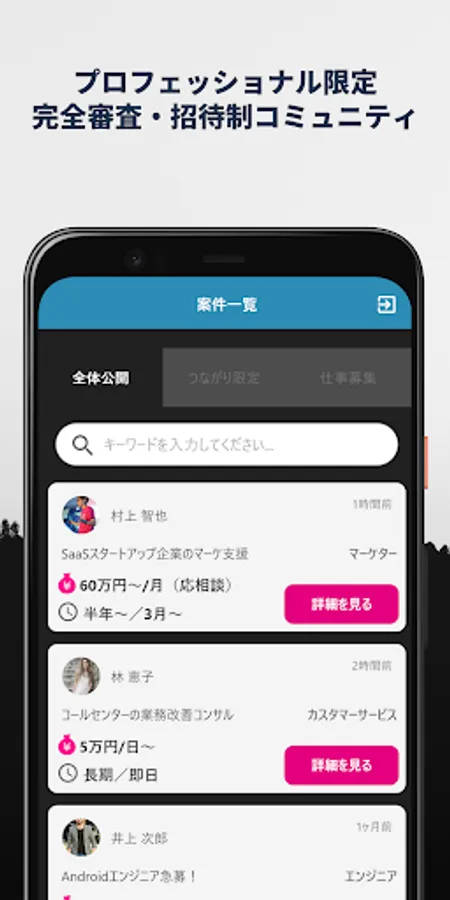 When looking for a professional to work with, you can post your case. You can choose whether the disclosure range is limited to connections or open to the public, so first try to open only to connections, and if you can't find it, open it to the public.