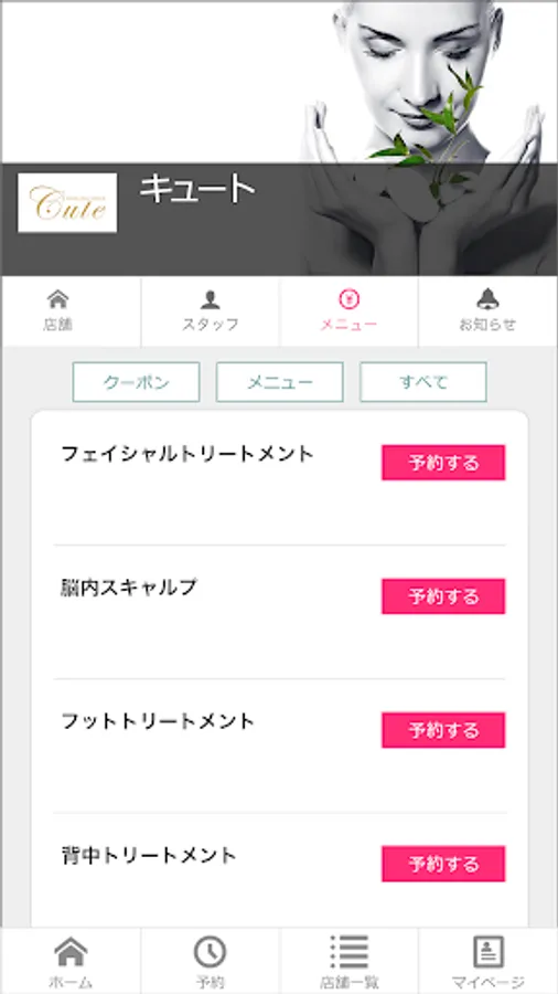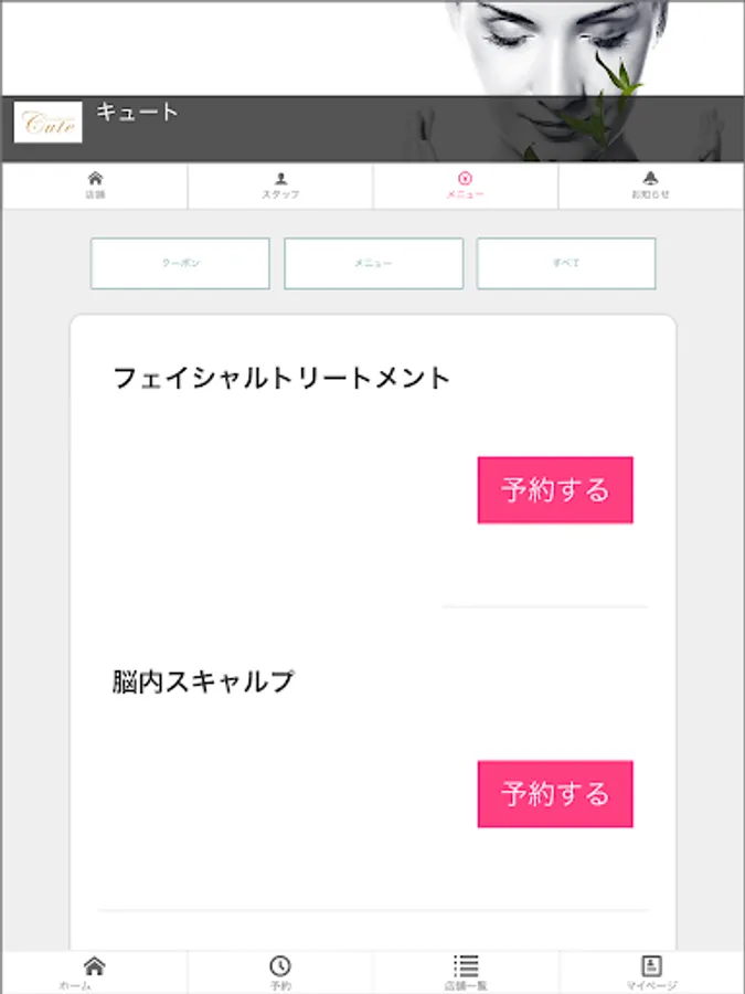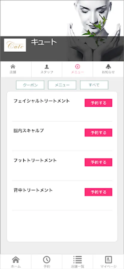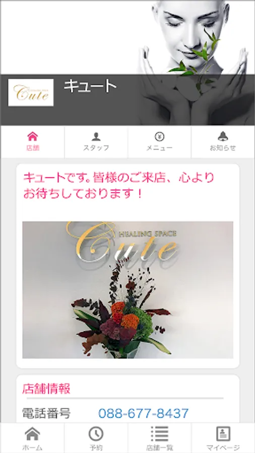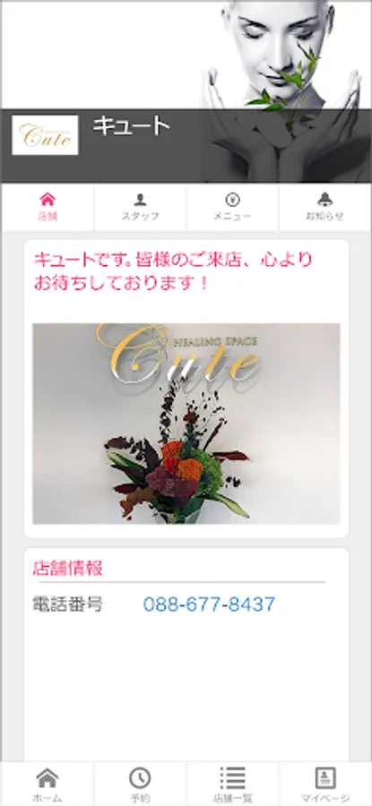 This is the official app of [Cute Co., Ltd.], which operates an aesthetic salon in Tokushima.