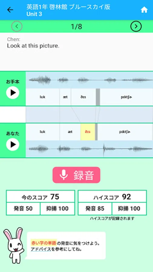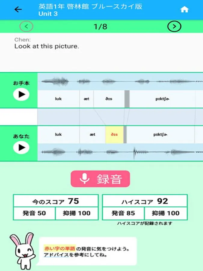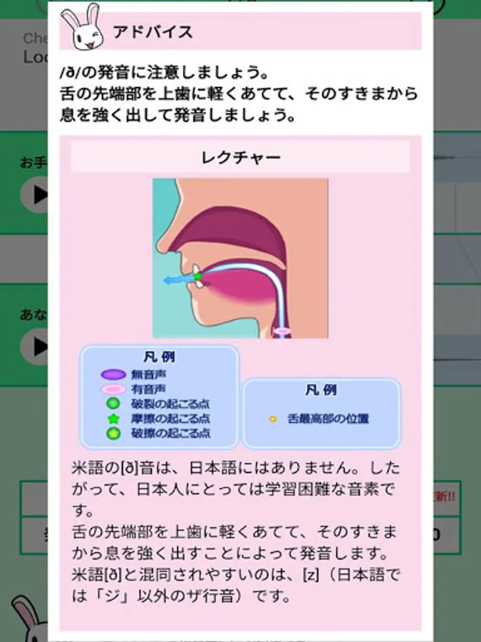 The user's pronunciation is automatically graded using the pronunciation evaluation technology that utilizes the research results and voice information processing technology cultivated over many years at the Advanced Telecommunication Research Laboratories (ATR).