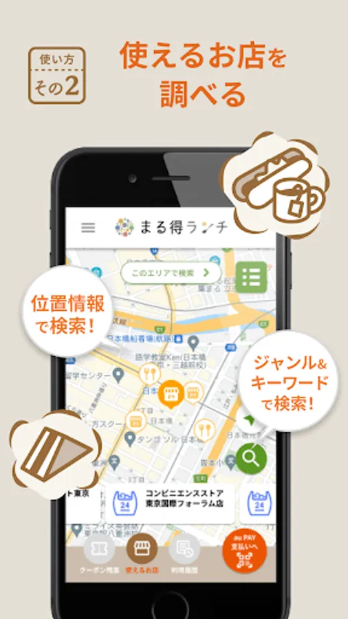 ■ Search function for shops that can be used You can search for shops that can use Marutoku lunch coupons.