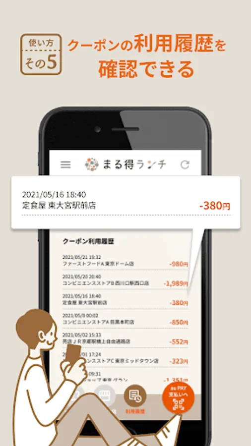 ■ Coupon usage history You can check the usage history of Marutoku Lunch Coupons.